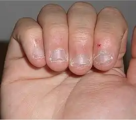 При обкусывании часто страдает и прилежащая кожа, что приводит к местным воспалительным явлениям[2].