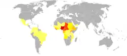 В мире насчитывается около 18 млн больных онхоцеркозом, из них примерно у 600 тыс. заболевание привело к значительному снижению зрения или полной слепоте[3]. Наиболее часто заболевание регистрируется в Западной и Центральной Африке[4]. Случаи заболевания отмечаются в Йемене и шести странах Латинской Америки[5][6].