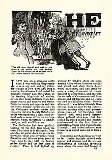 Они погружались в неисчерпаемый лабиринт неизведанной старины (англ. Inexhaustible maze of unknown antiquity), где висели масляные фонари со свечами, крались на цыпочках через пролеты, прошли жуткий двор и сквозь полную черноту (англ. Total blackness) к узкой двери в высокой стене с плющом. Переулок вздымался в гору гораздо круче, чем возможно в этой части Нью-Йорка. Старец привел его в свой дом, внутри него стоит запах векового разложения. Старец начал рассказ о своем предке.