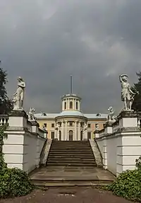 - Архангельское (сейчас во дворце размещаются музей и санаторий) считается общепризнанным образцом садово-паркового искусства. Заложена в 60-е годы XVII века боярином Одоевским. В XVIII веке усадьба принадлежала Голицыным, а затем перешла к Юсуповым (в 1810 г.).