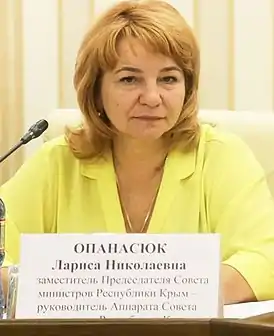 - Опанасюк Лариса Николаевна Заместитель председателя Совета министров Республики Крым — руководитель аппарата Совета министров Республики Крым