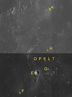 - Сателлитный кратер Опельт E включен в список кратеров с темными радиальными полосами на внутреннем склоне Ассоциации лунной и планетарной астрономии (ALPO)[4].