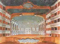 Центр оперного творчества постепенно переместился в Венецию; здесь в 1637 году был открыт и первый публичный оперный театр — «Сан-Кассиано», для которого писал свои последние оперы Монтеверди, в 1613—1643 годах служивший первым капельмейстером в соборе Св. Марка[52][53]. В этом городе новый жанр пользовался таким успехом, что вслед за «Сан-Кассиано» в течение четырёх лет были открыты ещё три театра[К 1]; общедоступные благодаря невысоким ценам на билеты, они приносили своим владельцам немалые прибыли[55][56]. Именно создание музыкального театра превратило оперу, бывшую прежде лишь частью придворных церемоний или увеселительных мероприятий, в самостоятельную и законченную театральную форму[54].