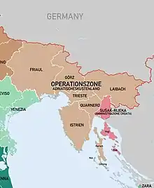 Район OZAK со штаб-квартирой в Триесте был создан 10 сентября 1943 Гитлером как ответ на итальянскую капитуляцию (8 сентября 1943). Зона включала провинции Фриули, Горица и Градишка, Триест, Истрия (Пула), Риека (Фиуме) и Любляна. Предальпийская оперативная зона (в составе провинций Беллуно, Больцано и Тренто) была образована в тот же день. Обе оперативные зоны официально принадлежали Итальянской социальной республике.