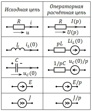 Преобразование функций действительного переменного в операторную функцию производится с помощью методов операционного исчисления. Например, если в цепи имеется источник постоянной ЭДС , то в операторной схеме замещения вместо неё будет операторная ЭДС .