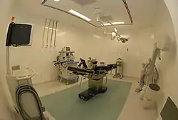 Операционные являются достаточно просторным помещением, удобным для тщательной уборки, и снабжены хорошим бестеневым, рассеяным освещением в виде операционных светильников, могут оснащаться различным медицинским оборудованием, в частности, медицинскими мониторами. Операционные проектируются и выполняются как с естественным дневным освещением[1][2], так и без окон, и имеют контроль за температурой воздуха и влажностью. В них создаётся несколько повышенное давление, воздух в помещении фильтруется.