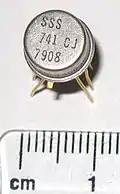 В 1967 году фирма «National Semiconductor», куда перешёл работать Видлар, выпустила интегральный ОУ LM101, а в 1968 году фирма Fairchild выпустила ОУ, практически идентичный μA741 — первый ОУ со встроенной частотной коррекцией. ОУ LM101/μA741 был более стабилен и прост в использовании, чем предшественники. Многие производители до сих пор выпускают версии этого классического чипа (их можно узнать по числу «741» в индексах моделей). Позднее были разработаны ОУ и на иной элементной базе — на полевых транзисторах с p-n переходом (конец 1970-х годов) и с изолированным затвором (начало 1980-х годов), что позволило существенно улучшить ряд характеристик. Многие из более современных ОУ могут быть установлены в схемы, спроектированные для 741 без каких-либо доработок, при этом характеристики схемы только улучшатся.