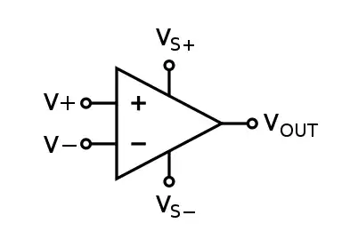 - VS− — минус источника питания (также может обозначаться как , или ).