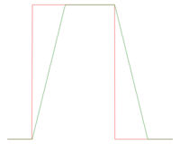 - Ограниченная скорость нарастания. Выходное напряжение ОУ не может измениться мгновенно. Скорость изменения выходного напряжения измеряется в вольтах за микросекунду, типичные значения 1÷100 В/мкс. Параметр обусловлен временем, необходимым для перезаряда внутренних ёмкостей. Ограниченная скорость нарастания выходного напряжения приводит к появлению особого рода динамических искажений сигнала в усилителях на ОУ. Причина их появления состоит в том, что в первый момент после подачи на вход скачка напряжения, отрицательная обратная связь ОУ оказывается разомкнутой, и первый каскад ОУ входит в режим насыщения, обогащая сигнал гармоническими и интермодуляционными искажениями.