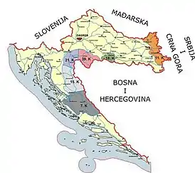 - 11-й Восточно-Славонский корпус находился в Восточной Славонии. С началом «Бури» этот корпус ограничился небольшими боевыми действиями и артиллерийскими обстрелами, не оказав существенного влияния на ход операции[36][37].