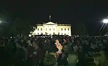 Через несколько минут после официального объявления ликующие толпы стихийно собрались у Белого дома, у месторасположения Всемирного торгового центра, у Пентагона и в Нью-Йорке на Таймс-сквер. В Дирборне — пригороде Детройта с высоким процентом мусульманского и арабского населения — у мэрии для празднования собралась небольшая толпа, многие из людей были ближневосточного происхождения[119]. В связи с заявлением Обамы в Твиттер в пиковый момент писалось 5106 сообщений в секунду, предыдущий рекорд Твиттера был связан с землетрясением и цунами в Японии[120]. Бейсбольные фанаты во время прямого эфира игры между клубами «Филадельфия Филлис» и «Нью-Йорк Метс» начали кричать «U-S-A!» в ответ на новость[121].
