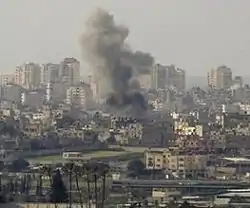 ![]() Атака Израиля вызвала взрыв в жилой части сектора Газа (12 января 2009) | |||
