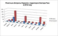 С начала января по конец октября 2012 года более 500 ракет было выпущено по Израилю из сектора Газа. Из них 127 ракет было выпущено в ходе 48 обстрелов, осуществлённых в октябре. Пятеро мирных жителей получили ранения.