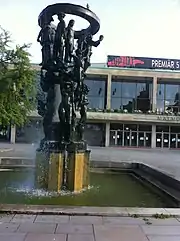 На площади перед театром находится фонтан Tragos с одноимённой скульптурой, выполненной Нильсом Сьогреном из бронзы. Скульптура представляет собой 22 театральных персонажа. Ночью фонтан подсвечивается, за что его жители Мальмё часто называют «Волшебный фонтан».[5]