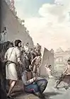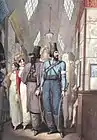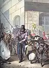 Казак раздает парижанам напечатанную декларацию Александра I.