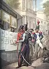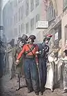Русские офицеры, в том числе казак, прогуливаются с парижанками.