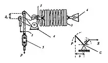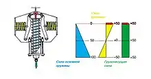 Основным элементом одного из распространенных типов опор постоянного усилия является рычажно-пружинный механизм, который обеспечивает незначительное изменение величины сжатия пружины в определённом интервале перемещений[14]. Другие конструктивные решения опор постоянного усилия основаны на использовании дополнительных пружин, действующих на грузонесущую часть через кулачки и рычаги с криволинейными поверхностями. Дополнительное воздействие приводит к выравниванию линейной характеристики основной пружины: грузонесущая сила в определённом диапазоне перемещений грузонесущей части становится постоянной.