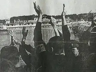 «Необычность посещения заезжим знаменитостям, – отмечал журналист В. В. Курносов, – придала охрана – молодые ребята в чёрных рубашках с красными повязками на левой руке».[2]