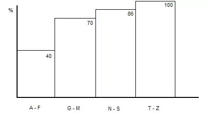 - Найти оценки числа строк Ri для каждого интервала i в процентах.