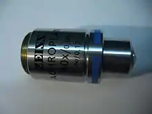 Объектив микроскопа представляет собой сложную оптическую систему, образующую увеличенное изображение объекта, и является основной и наиболее ответственной частью микроскопа. Объектив создаёт изображение, которое рассматривается через окуляр. Поскольку окуляры могут давать существенное увеличение, то и оптические искажения, вносимые объективом, также будут увеличены окуляром. Это накладывает на качество объектива значительно большие требования, чем на окуляр.