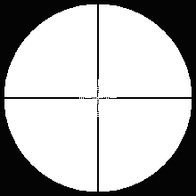 Позволяет с высокой точностью навести оружие на небольшую и/или удалённую неподвижную цель. Зная угловое расстояние от перекрестья до утолщения нитей, можно оценить угловые размеры цели.