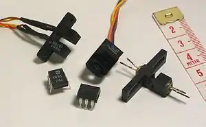 Оптроны с открытым оптическим каналом, доступным для механического воздействия (перекрытия) используются как датчики во всевозможных детекторах наличия (например, детектор бумаги в принтере), датчиках конца или начала (аналогично механическому концевому выключателю), счётчиках и дискретных спидометрах на их базе (например, координатные счётчики в механической мыши, анемометры).
