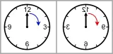 Внизу: P-асимметрия: часы, построенные по принципу зеркального изображения, «не» будут вести себя как зеркальное изображение оригинальных часов.