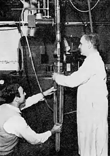 Соль намагничивалась вдоль оси, обладающей большим g-фактором, а температура снижалась до 1,2 K путём откачки паров гелия до низкого давления. Отключение горизонтального магнитного поля приводило к снижению температуры примерно до 0,003 K. Горизонтальный магнит был открытым, давая место для вертикального соленоида, который можно было ввести и включить, чтобы выровнять магнитные моменты ядер кобальта, направленные вверх или вниз[2]. Магнитное поле соленоида лишь незначительно повышало температуру, так как ориентация магнитного поля соленоида была в направлении низкого g-фактора. Этот метод достижения высокой поляризации ядер 60Co был изобретён Гортером[19] и Роузом[20].