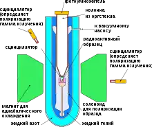 Задача этого эксперимента состояла в том, чтобы получить максимально возможную поляризацию ядер 60Со. Из-за очень малых магнитных моментов ядер по сравнению с электронами требовались сильные магнитные поля при чрезвычайно низких температурах, намного более низких, чем можно было бы достичь одним охлаждением жидким гелием. Низкие температуры были достигнуты методом адиабатического размагничивания. Радиоактивный кобальт был нанесён в виде тонкого поверхностного слоя на кристалл нитрата церия-магния, парамагнитной соли с сильно анизотропным g-фактором Ланде[1][2].