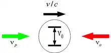 где — частота перехода в состоянии покоя. В случае справедливости специальной теории относительности равен нулю.