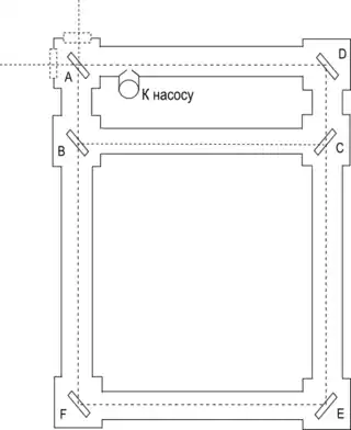 Цель опыта, как она была впервые предложена Альбертом А. Майкельсоном в 1904 г., а затем реализована в 1925 г., состояла в том, чтобы выяснить, влияет ли вращение Земли на распространение света вблизи Земли[1][2][3]. Эксперимент Майкельсона — Гэля представлял собой очень большой кольцевой интерферометр (периметр 1,9 км), достаточно большой, чтобы определить угловую скорость Земли. Как и в исходном опыте Майкельсона — Морли, в версии Майкельсона — Гэля — Пирсона сравнивался свет от одного источника (угольная дуга) после прохождения в двух направлениях. Основное изменение заключалось в замене двух «плеч» оригинальной версии опыта Майкельсона — Морли двумя прямоугольниками, один из которых был намного больше другого. Свет направлялся в прямоугольники, отражаясь от зеркал в углах, и возвращался в исходную точку. Свет, выходящий из двух прямоугольников, сравнивался на экране так же, как свет, возвращающийся из двух плеч, в стандартном эксперименте Майкельсона — Морли. Ожидаемое смещение полос в соответствии с неподвижным эфиром и специальной теорией относительности было дано Майкельсоном как: