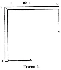 Парадокс Троутона — Нобла по существу эквивалентен в мысленном эксперимент под названием «парадокс прямоугольного рычага», впервые рассмотрен Гилберт Ньютон Льюисом и Ричард Чейза Толменом в 1909 году[9]. Предположим, прямоугольный рычаг с концами обозначенными abc. В системе покоя силы в сторону ба и по направлению к bc должны быть равены для достижения равновесия, поэтому закон рычага не даёт крутящего момента: