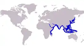 Оранжевопятнистые каваллы широко распространены в Индо-Тихоокеанской области. Встречаются в Персидском заливе, Красном море, Аденском и Оманском заливах и далее на восток до Юго-Восточной Азии. В западной части Тихого океана встречаются в Сиамском заливе, у берегов Индонезии, Филиппин и Папуа — Новой Гвинеи до Соломоновых островов на востоке и на север до Японии[7].