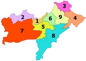 | Включает | 9 округов и 26 коммун |