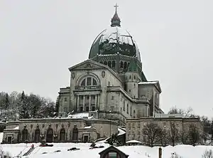 В 1904 году монах конгрегации Святого Креста Андре Бессетт начал самостоятельно строить небольшую часовню на горе Мон-Руаяль в Монреале. Андре Бессетт в то время прославился среди верующих даром исцеления, и эту часовню стали посещать многочисленные посетители, число которых постоянно увеличивалось. Возникла необходимость в строительстве нового храма. В 1917 году началось строительство нового храма, который, несмотря на то, что был достроен не полностью, был торжественно открыт в 1924 году. Окончательно храм был достроен в 1967 году уже после смерти Андре Бессетта. Купол построенного храма по своей высоте (129 м) стал третьим в мире после соборов Нотр-Дам-де-ла-Пэ в Ямусукро (Кот-д’Ивуар) и собора Святого Петра в Риме.