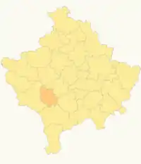 | входит в Призренский округ автономного края Косово и Метохия | входит в Джаковицкий округ Республики Косово |