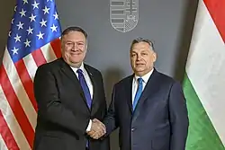 В конце января 2019 года в ответ на требование США занять более жёсткую позицию по отношению к России и Китаю Виктор Орбан выступил против давления, ответив, что Венгрия стремится к тому, чтобы занимать более нейтральную позицию, что стране выгодно вести бизнес с Россией[12].