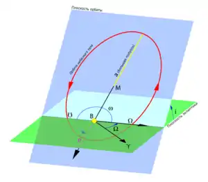 - наклонение орбиты (),