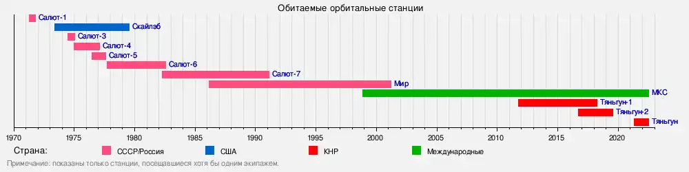 «Мир» («Салют-8», ДОС-6, 1986—2001)- МКС (с 1998) — совладение 15 государств