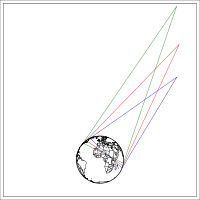 Вид на Землю в точке апогея, долгота апогея — 90° з.д. Высота космического аппарата 39 867 км над точкой 63.43° N 90° W.