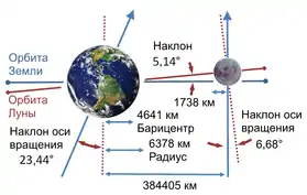 | Среднее наклонение лунного экватора к эклиптике | 1,543° |