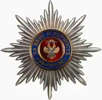 Орден Святого Георгия — высшая воинская награда Российской Федерации, восстановлена после упразднения в 1917 году. Орденом награждаются старшие и высшие офицеры за проведение боевых операций по защите Отечества при нападении внешнего противника, завершившихся полным разгромом врага, ставших образцом военного искусства, подвиги которых служат примером доблести и отваги для всех поколений защитников Отечества и которые награждены государственными наградами Российской Федерации за отличия, проявленные в боевых действиях. Орден имеет четыре степени (с I по IV, первая — высшая), присуждаемые последовательно. Лица, награждённые орденом III и IV степени, носят только знак; награждённые орденом I и II степени — носят знак и звезду. |