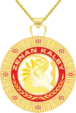 Средняя окружность, диаметром 31,5 мм, покрыта красной эмалью и имеет в верхней части надпись «ZENAN KALBY», а в нижней части две скрещённые оливковые ветви.