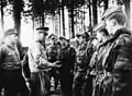 Председатель ЛДПГ Манфред Герлах вручает офицеру внутренних войск медаль Артура Бекера за выполнение мероприятий по обеспечению безопасности границы (29 августа 1968 года).