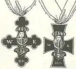 Статутом ордена был предусмотрен большой крест и кресты рыцарей (нем. Ritter) первого и второго классов. Рыцари носили кресты на красной с белыми краями ленте в петлице. Рыцари первого класса, помимо креста в петлице, носили крест на левой груди, а обладатели большого креста носили также крест на шее.