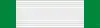 Лента ордена шёлковая муаровая белого цвета с широкими зелёными полосами вдоль краёв. На ленту офицера крепится круглая розетка из той же ленты.