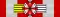 Лента ордена красная с белыми полосами: одной узкой посередине и по одной широкой ближе к краям. К ленте офицера крепится розетка из такой же ленты.