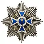 Звезда — серебряная восьмиконечная. На центр звезды наложен орденский крест большого размера.
