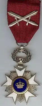 - скрещенные мечи — награда вручаемая в военное время. Мечи могут быть дополнены планками с надписью «40-45» за заслуги в ходе Второй Мировой войны, либо «Korea» за участие в корейской войне;