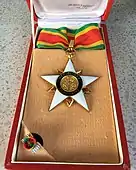 - Гранд-офицер – знак ордена на нагрудной ленте с розеткой и звезда на правой стороне груди.